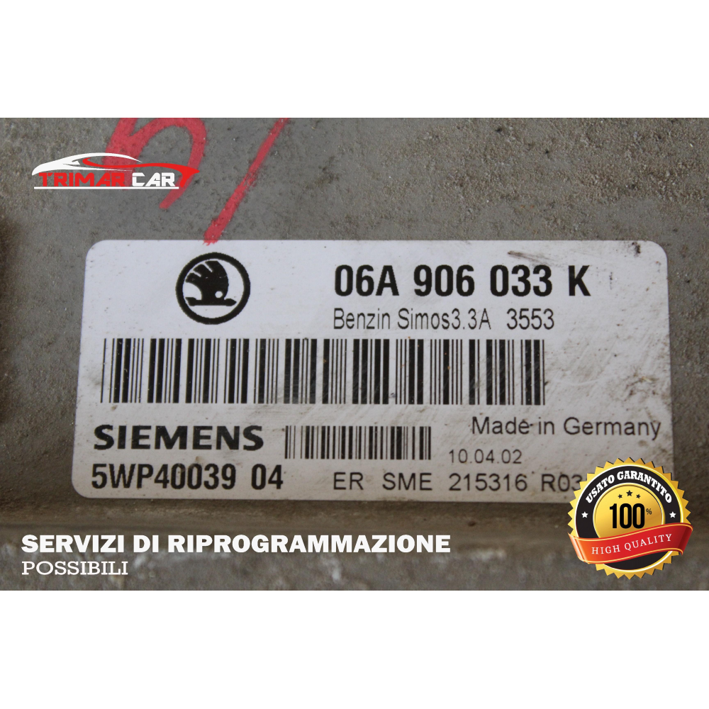 **NOTA** PRIMA DI ACQUISTARE QUALSIASI CENTRALINA TI PREGHIAMO INNANZITUTTO DI CONTROLLARE CHE I CODICI SIANO UGUALI O COMPATIBILI CON LA TUA, AL FINE DI RENDERE FUNZIONANTE LA CENTRALINA MOTORE E QUINDI POTERLA INSTALLARE SULLA TUA AUTOVETTURA POTREBBE ESSERE NECESSARIA LA SCODIFICA. LA TRIMARCAR RICAMBI OFFRE IL SERVIZIO DI SCODIFICA SU QUASI TUTTE LE CENTRALINE IN VENDITA. ACQUISTANDO IL SERVIZIO AGGIUNTIVO DI SCODIFICA LA CENTRALINA SARà PRONTA ALL'USO SENZA ULTERIORI INTERVENTI.