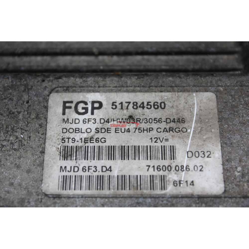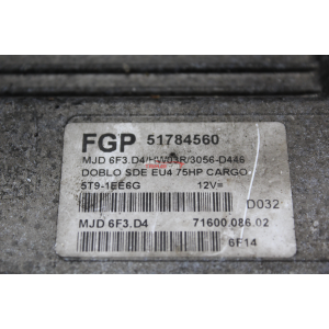 51784560 CENTRALINA INIEZIONE MOTORE ECU ENGINE FIAT DOBLO Cargo 1 (223)(05-10)  1.3 JTD 75 CV 199A2000 CODICE ALTERNATIVO; MJD6F3D4 MJD6F3.D4 XWXDD023BM