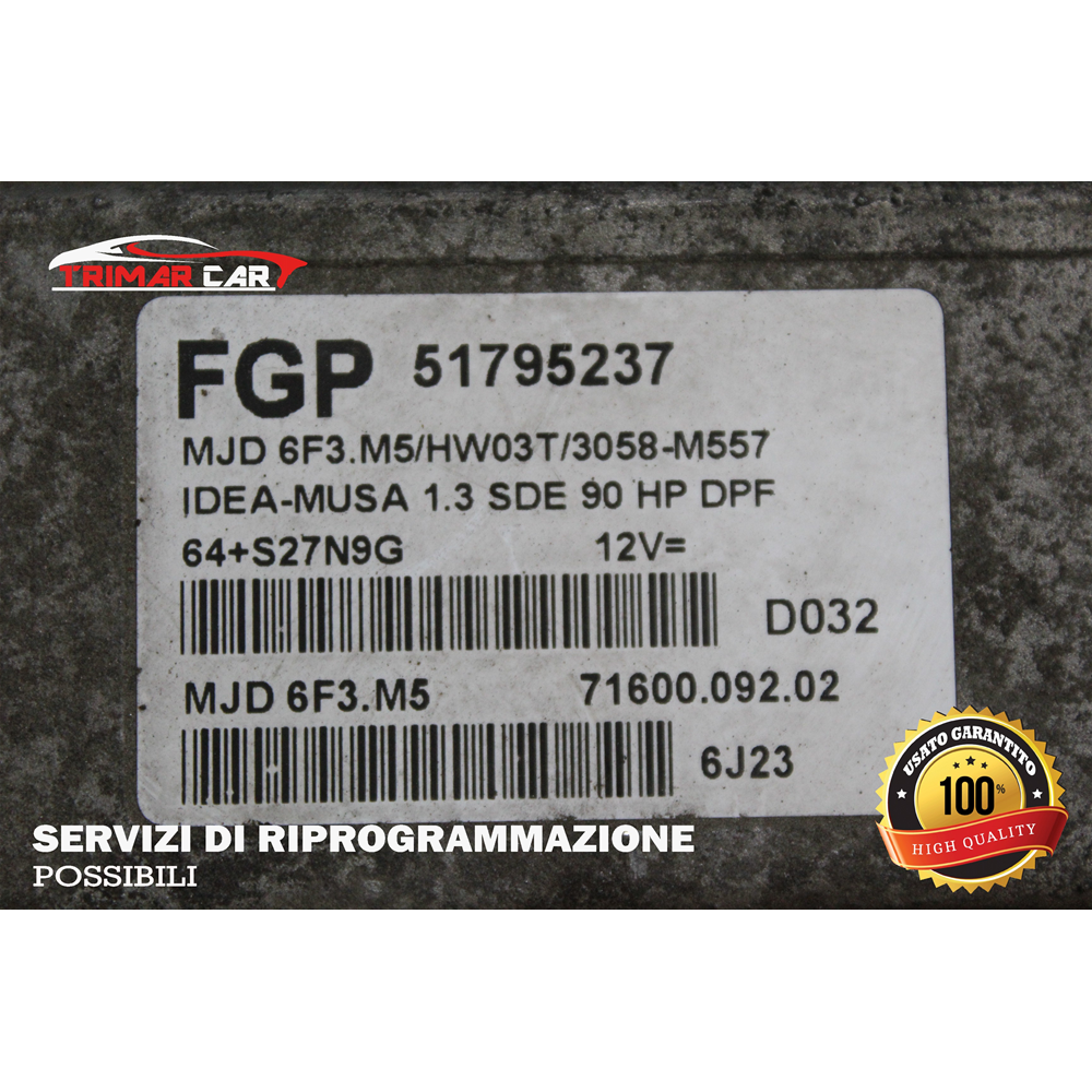 51795237 CENTRALINA INIEZIONE MOTORE ECU ENGINE LANCIA MUSA (350)(2004-2012) 1.3 MJET 90CV 66KW COD MOT; 199A3000 COD ALTERNATIVO: XWXDD570CH MJD6F3.M5 CON SCODIFICA TOTALE GIA' EFFETTUATA