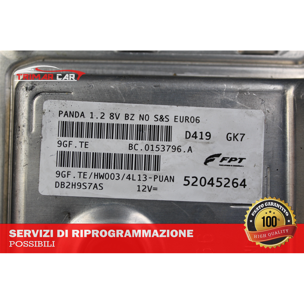 52045264 CENTRALINA INIEZIONE MOTORE ECU ENGINE FIAT PANDA 3 (312,319)(2012 IN POI) 1.2 COD ALTERNATIVO: XWXCZ015 9GF.TE HW003