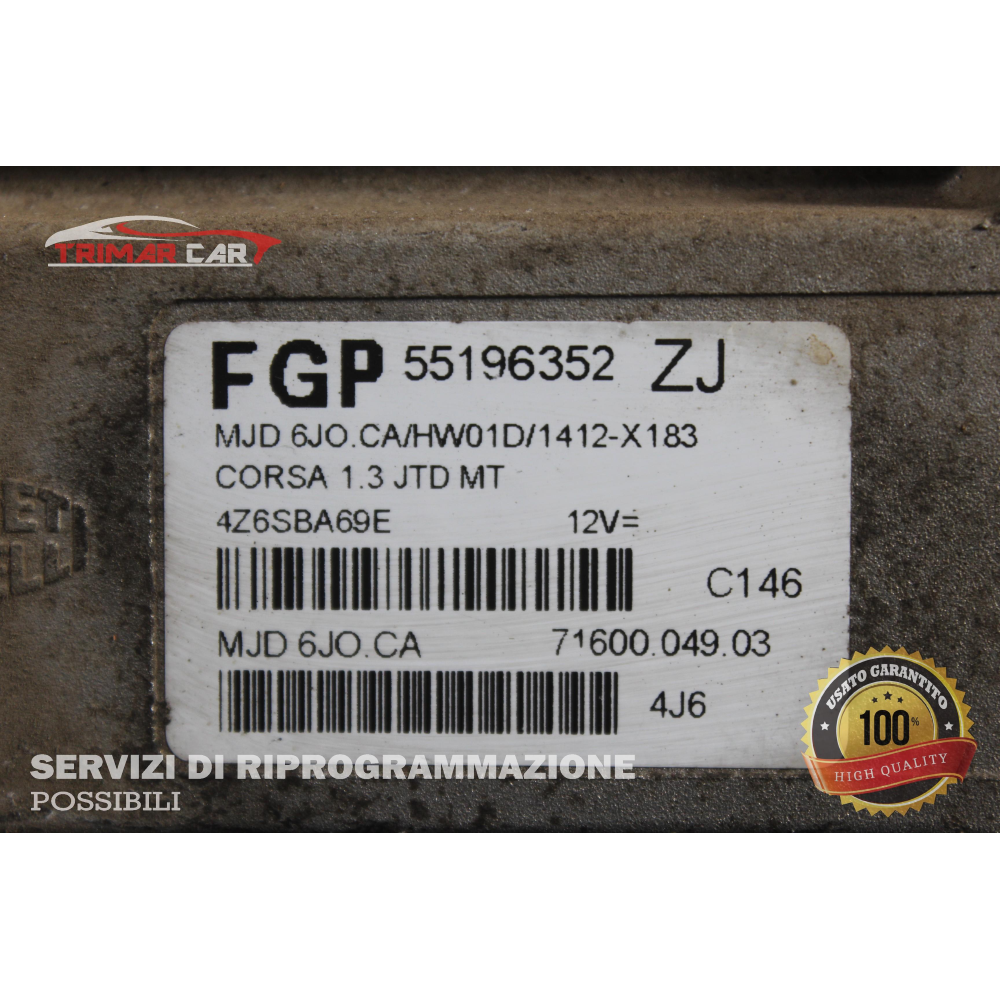 55196352 CENTRALINA INIEZIONE MOTORE ECU ENGINE OPEL CORSA C (X01)(2000-2009) 1.3 CDTI 70CV 51KW Z13DT / Y13DT CODICE ALTERNATIVO; MJD6JO.C1