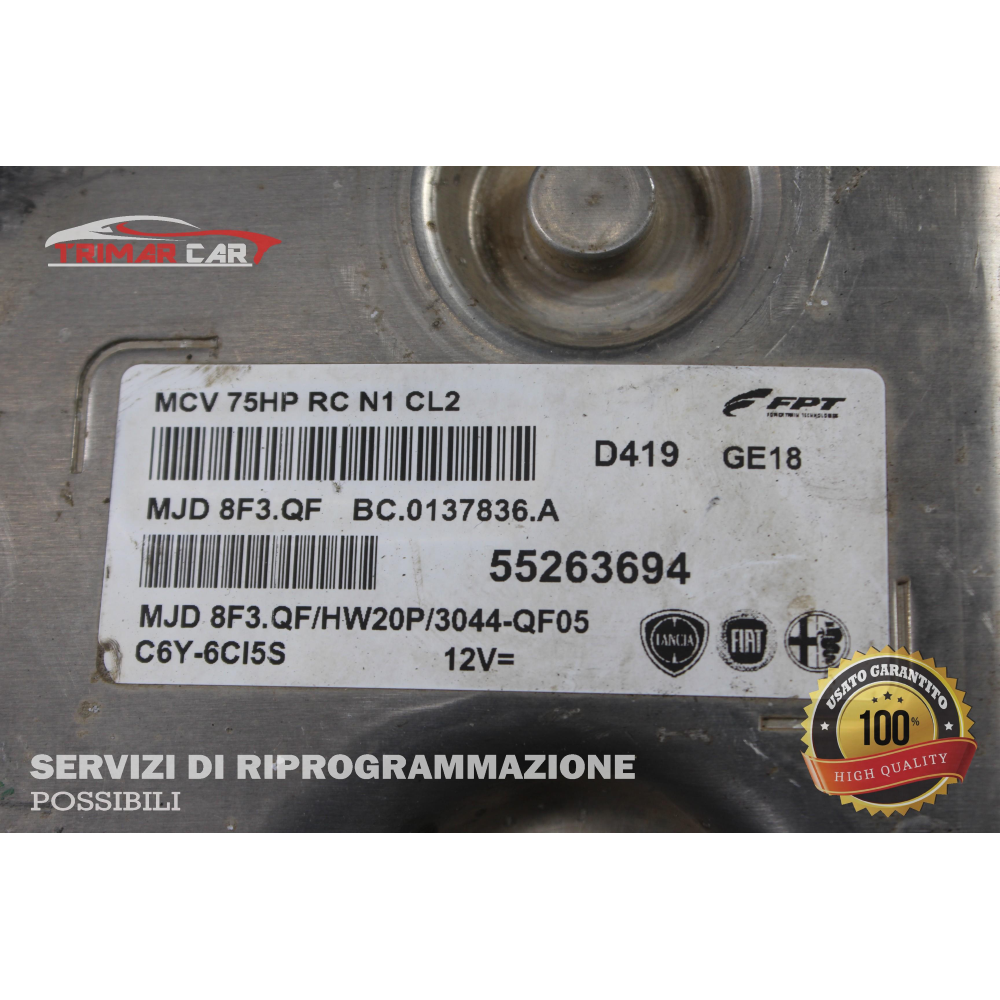 55263694 CENTRALINA INIEZIONE MOTORE ECU ENGINE FIAT FIORINO 3 (225)(2007 >) 1.3 MJET CODICE ALTERNATIVO; MJD8F3.QF // MJD8F3.QF/HW20P/3044-QF05 XWXTD030