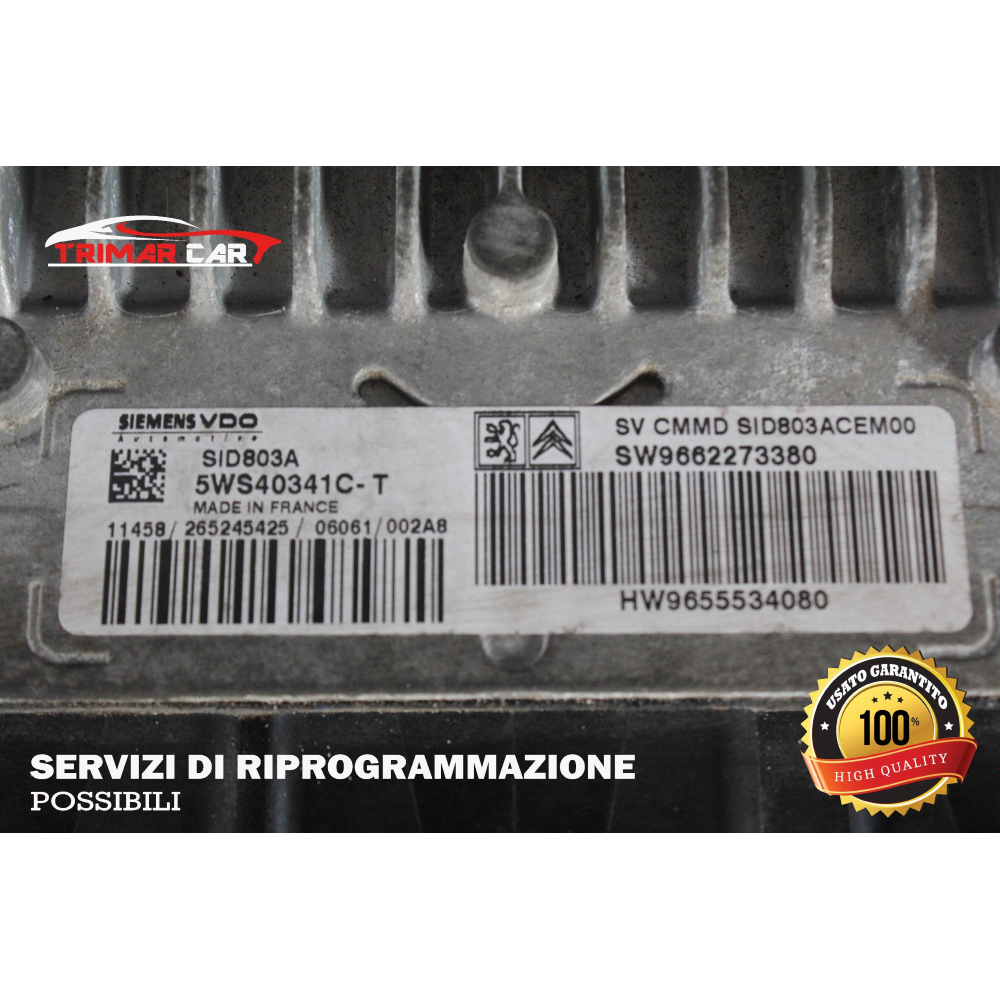 9655534080 CENTRALINA INIEZIONE MOTORE ECU ENGINE CITROEN C4 COUPE(LA)(04-11) 2.0 HDI 136CV 100KW COD.MOT.: RHR COD ALTERNATIVO: 5WS40341C-T // 9662273380 SID803A